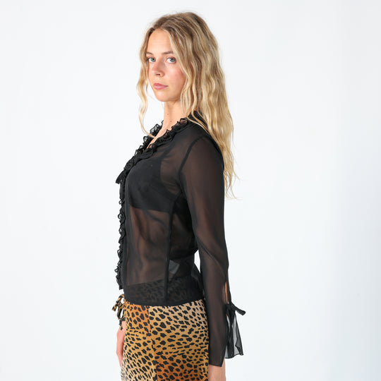 Black y2ks Cellophane Mesh Top Frill Detail Sheer (S)