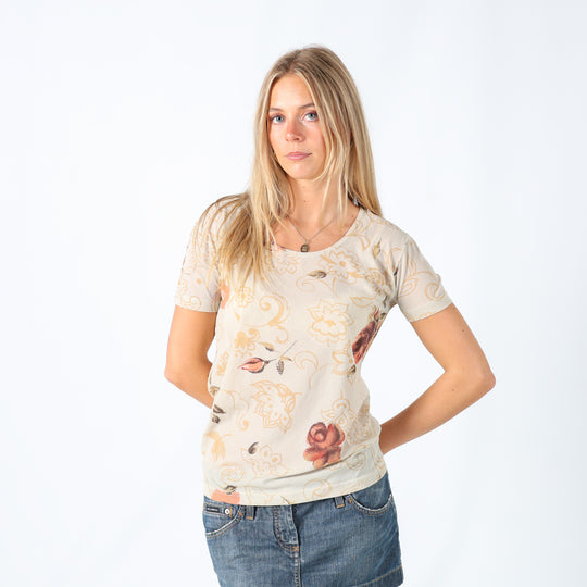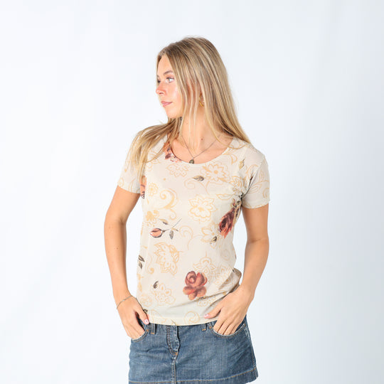 Beige y2ks Excise Blouse Floral Semi Sheer (L)