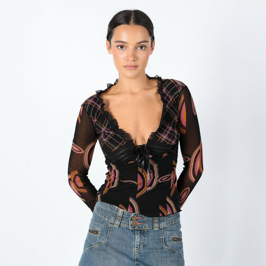 Black 90s Pois Mesh Top Sexy, Date Night, Girls Night Out (M)