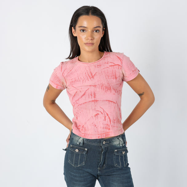 Baby Pink 90s Miss Sixty Woven Top Printed Tee Cute (S)