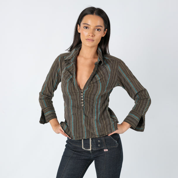 Yellow 90s Sisley Shirt Halter Shirt (M)