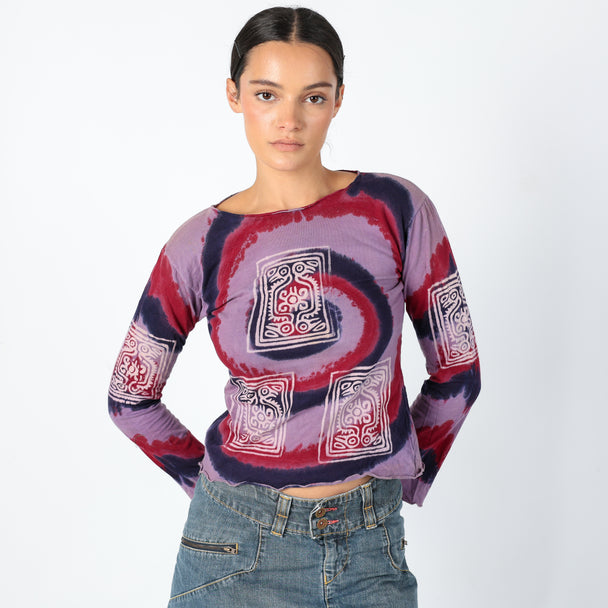 Purple 90s Legend Woven Top Fairy-Core, Festival, Printed (M)