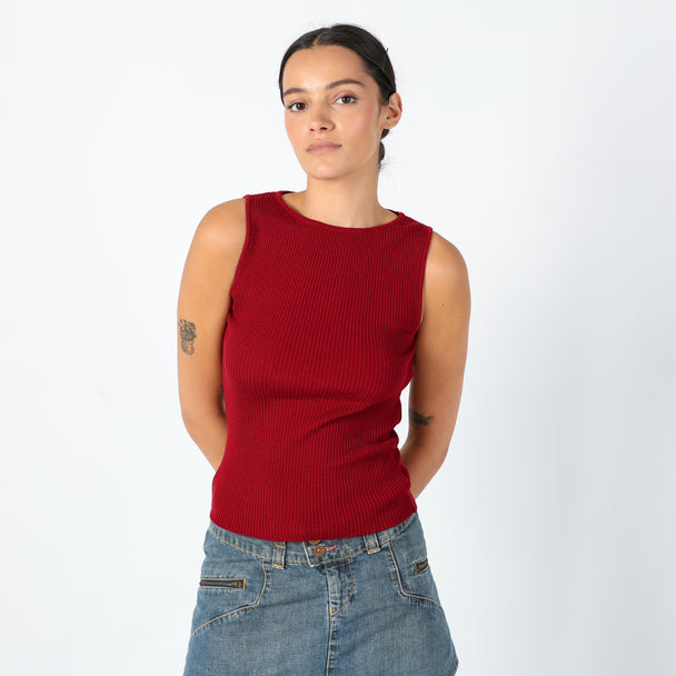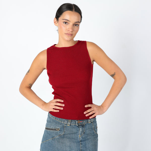 Burgundy Red 90s PennyPull Knitted Top Gilmore Girls, Woolmark, Chic (M)