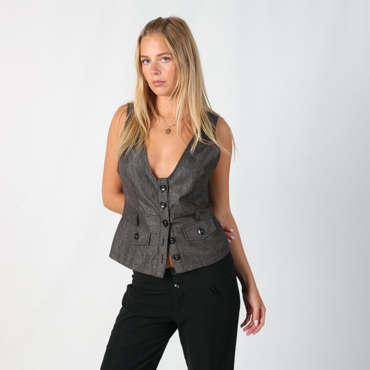 Grey y2ks TRF Denim Woven Top Waistcoat (M)