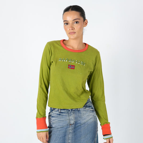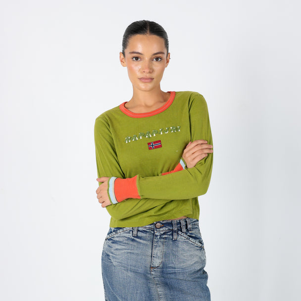 Light Green y2ks Napapijri Long Sleeve T Shirt (M)