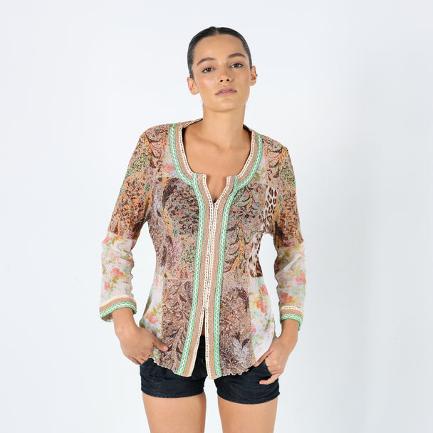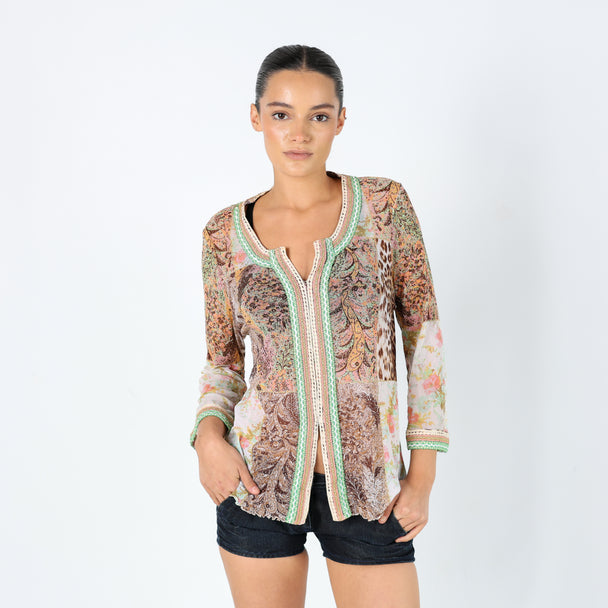 Multi Colured 90s Lueille Blouse Detail on Front Pattern (M)
