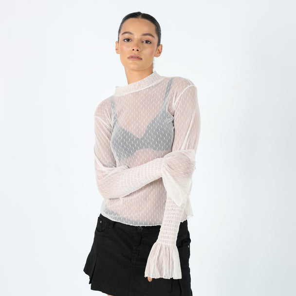 Cream y2ks Unbranded Mesh Top Sheer Long Sleeve (8)