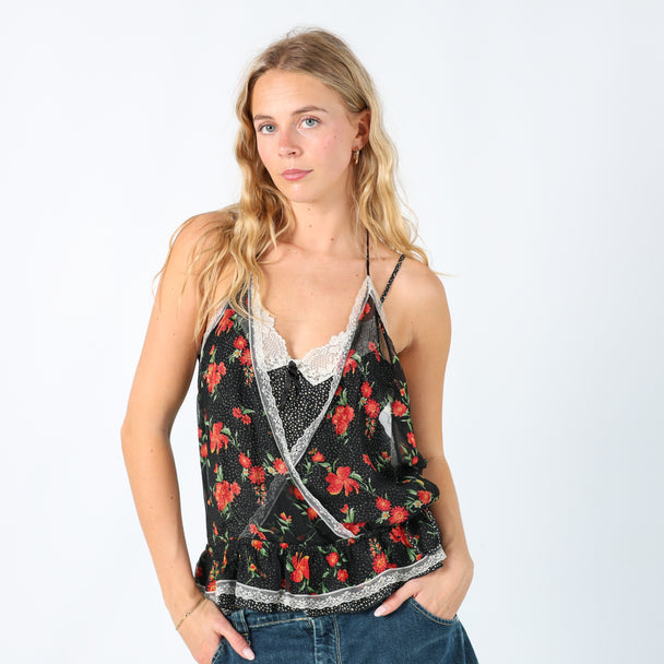 Black y2ks GUESS Jeans Woven Vest Pattern Lace Detail (8)
