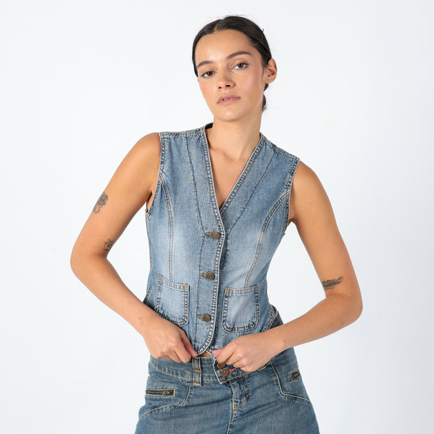 Light Blue 90s Edging Denim Waistcoat Summer Festival, 90s Waistcoat (8)