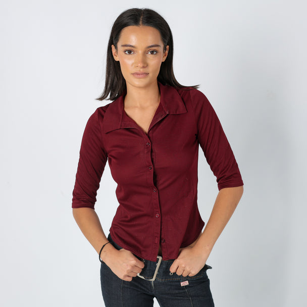 Burgundy Red 90s Pimkie Blouse Shimmer (S)