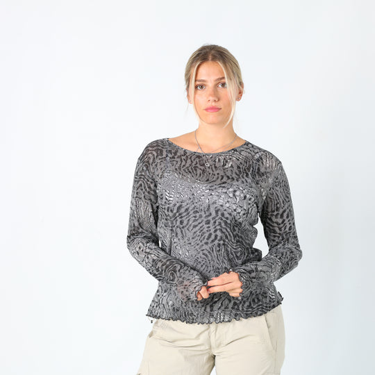 Grey y2ks Anna Ferrari Blouse Semi Sheer (M)