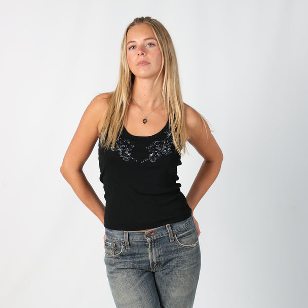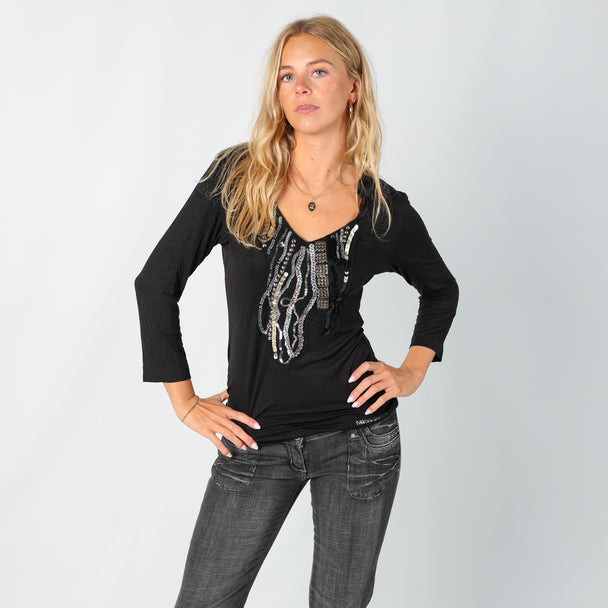 Black y2ks Miss Sixty Woven Top Sequin (M)