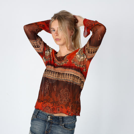 Orange y2ks Amisu Mesh Top Sheer Patterned (S)