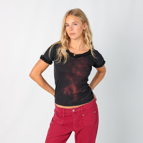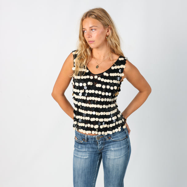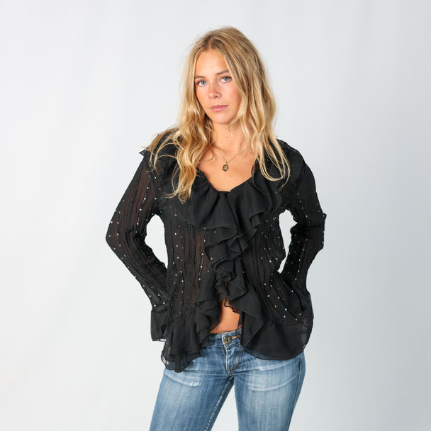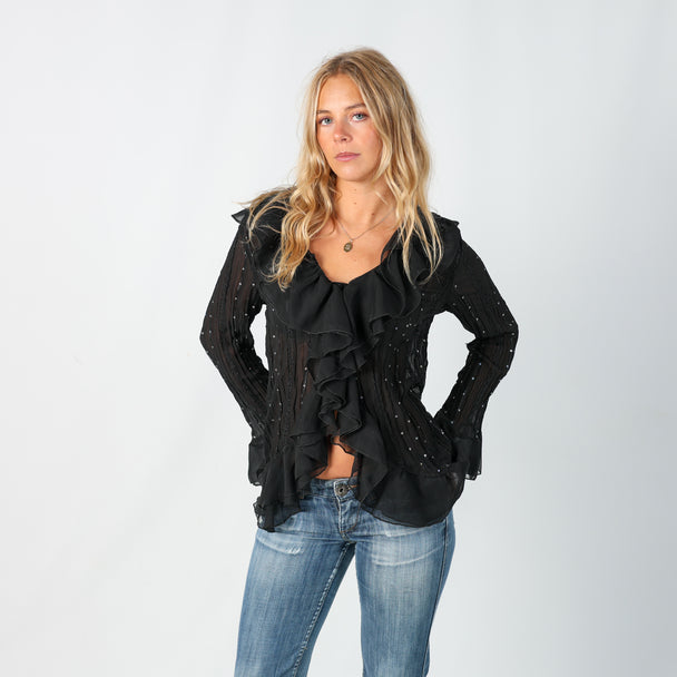 Black y2ks Wangli Blouse Sheer Sequin (L)