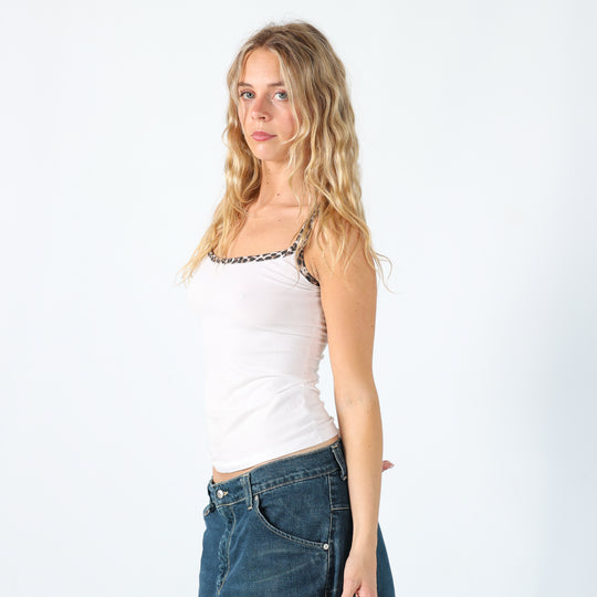 Ivory 90s Magic Dream Woven Vest Leopard Trim (S)