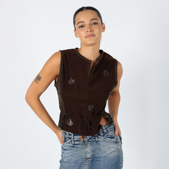 Brown 90s Bamboo Cami Suede Detail on Front (10)