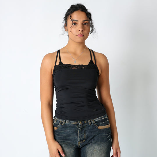 Black 90s GAS Cami Lace Detail Sexy Basic (S)
