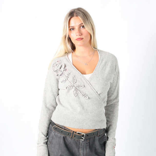 Light Grey 90s Liu Jo Knitted Top Sequin Detail (M)
