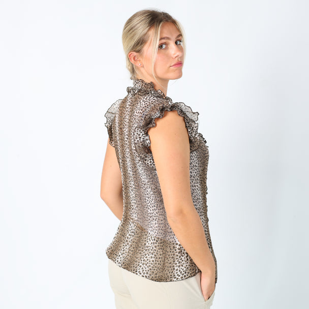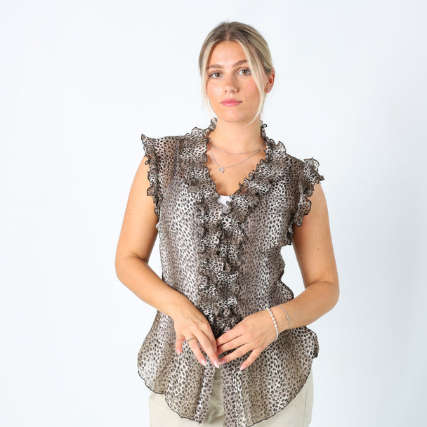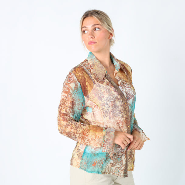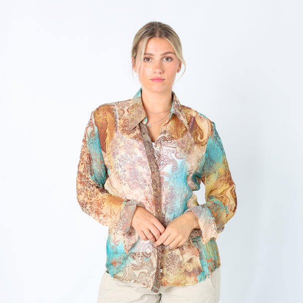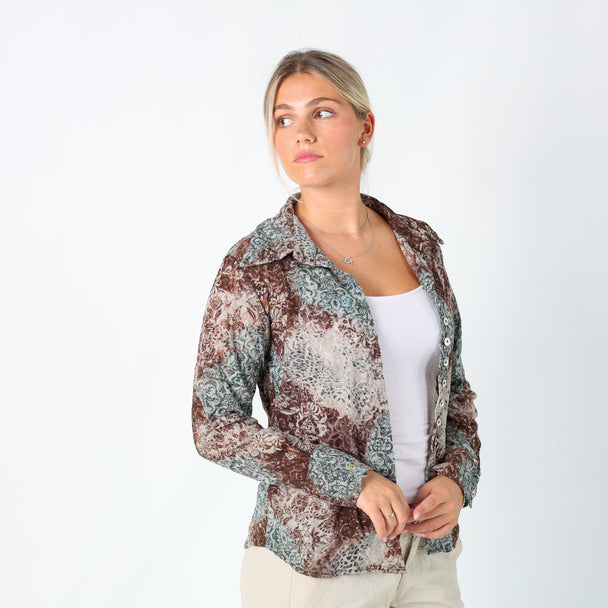 Brown 90s Duohui fushi Blouse Sheer Print (M)