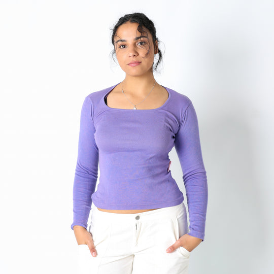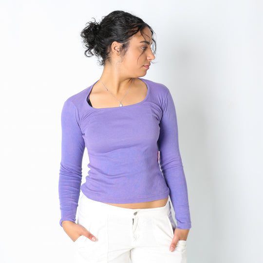 Purple 90s NorthPole Woven Top Cute Basic Soft (S)