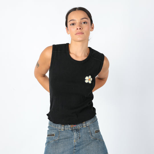 Black 90s Unbranded Woven Top Groovy Chick, Cute Vest Top (M)